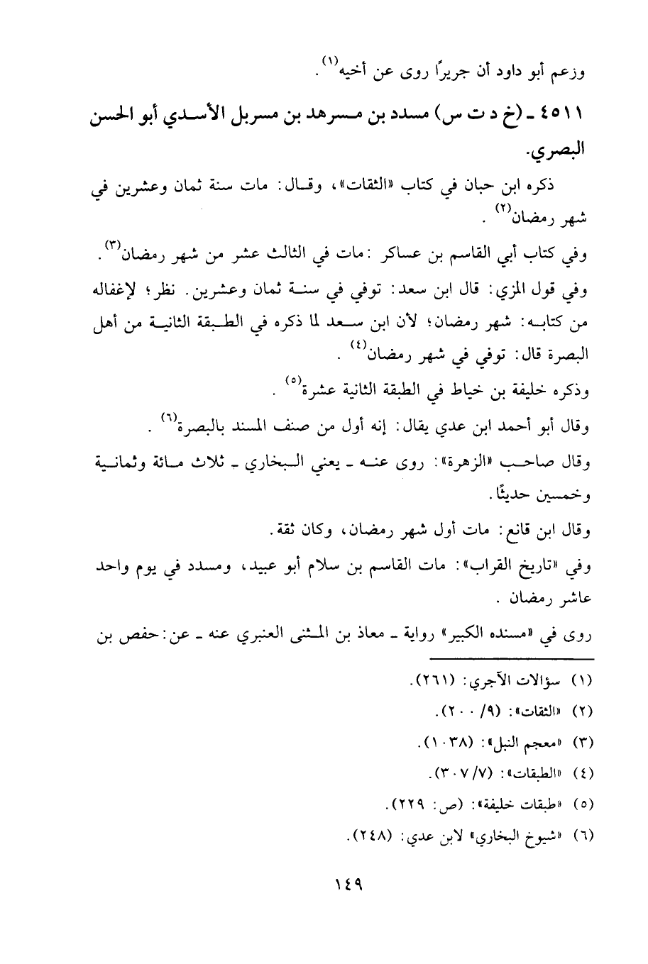 ٤٥١١ - (خ د ت س) مسدد بن مسرهد بن مسربل الأسدي، أبو الحسن البصري.