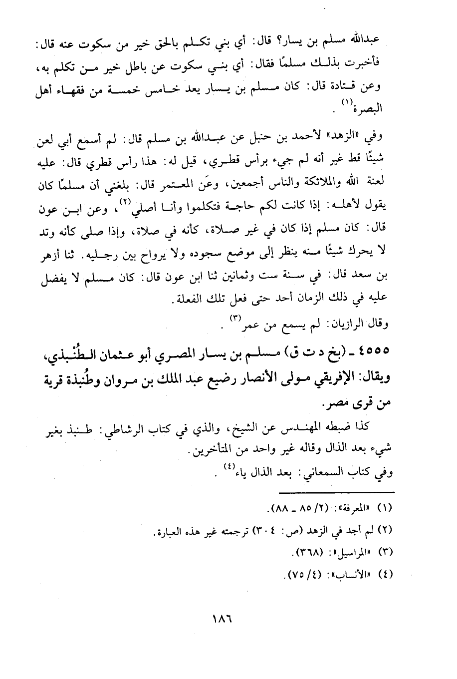 ٤٥٥٥ - (بخ د ت ق) مسلم بن يسار المصري، أبو عثمان الطنبذي، ويقال: الإفريقي، مولى الأنصار، رضيع عبد الملك بن مروان، وطنبذة قرية من قرى مصر.