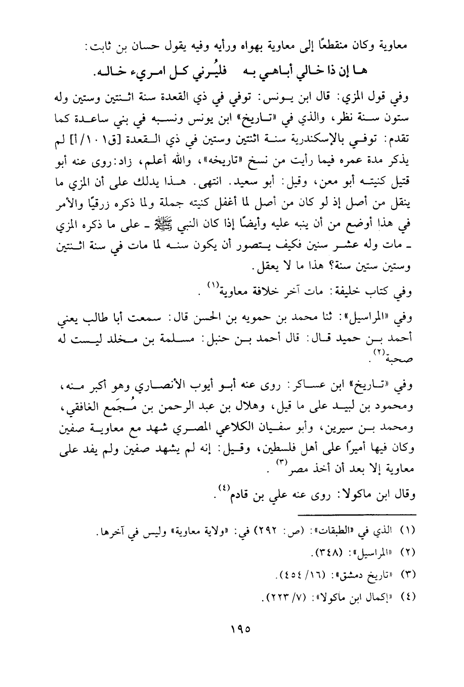 معاوية، وكان منقطعا إلى معاوية بهواه ورأيه، وفيه يقول حسان بن ثابت:
