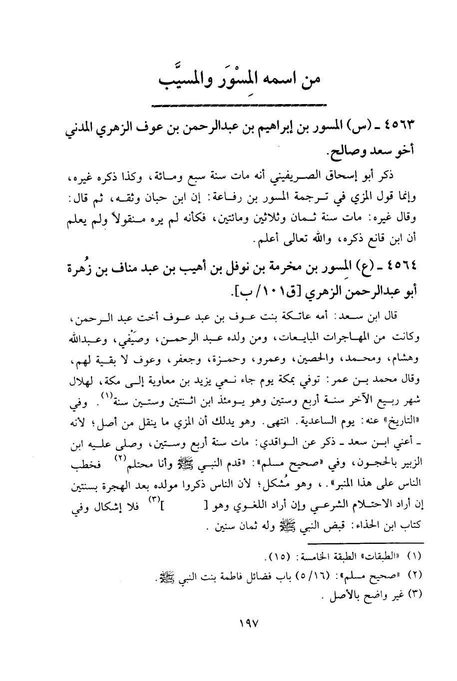 ٤٥٦٤ - (ع) المسور بن مخرمة بن نوفل بن أهيب بن عبد مناف بن زهرة، أبو عبد الرحمن الزهري.