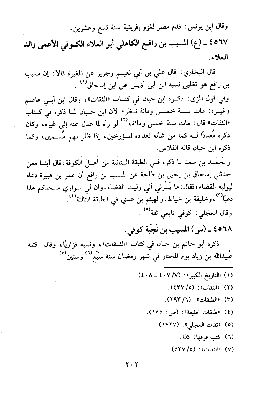 ٤٥٦٧ - (ع) المسيب بن رافع الكاهلي، أبو العلاء الكوفي الأعمى، والد العلاء.