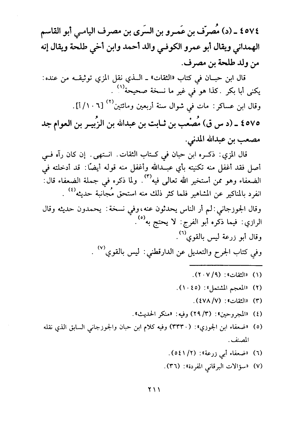 ٤٥٧٤ - (د) مصرف بن عمرو بن السري بن مصرف اليامي، أبو القاسم الهمداني، ويقال: أبو عمرو الكوفي، والد أحمد، وابن أخي طلحة، ويقال: إنه من ولد طلحة بن مصرف.