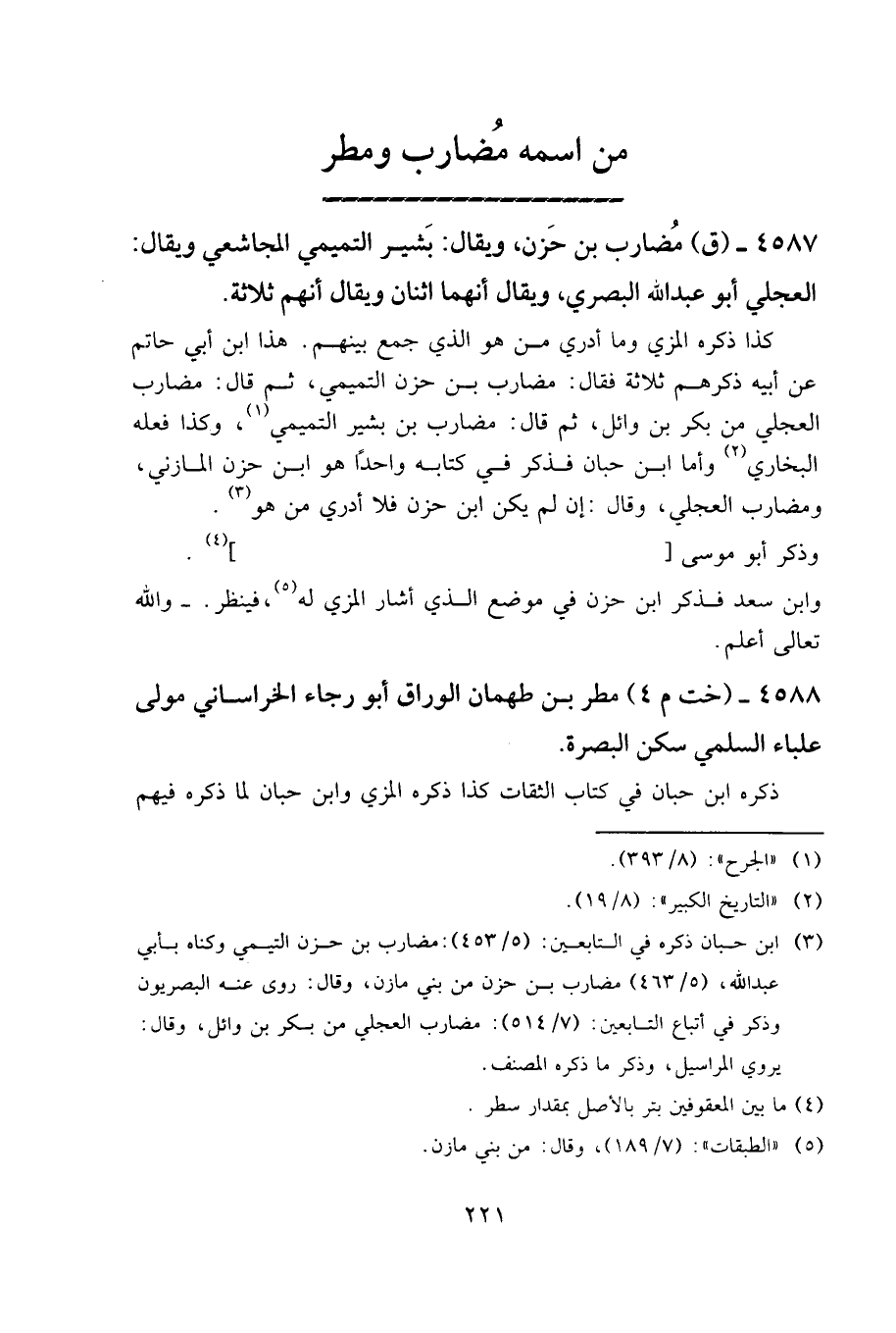 ٤٥٨٧ - (ق) مضارب بن حزن، ويقال: بشير التميمي المجاشعي، ويقال: العجلي، أبو عبد الله البصري، ويقال أنهما اثنان، ويقال أنهم ثلاثة.