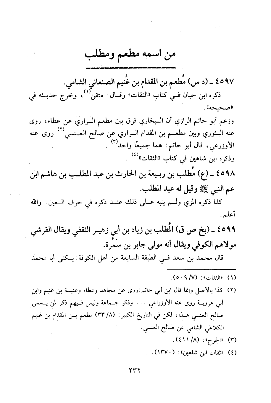 ٤٥٩٨ - (ع) مطلب بن ربيعة بن الحارث بن عبد المطلب بن هاشم، ابن عم النبي صلى الله عليه وسلم، وقيل له: عبد المطلب.