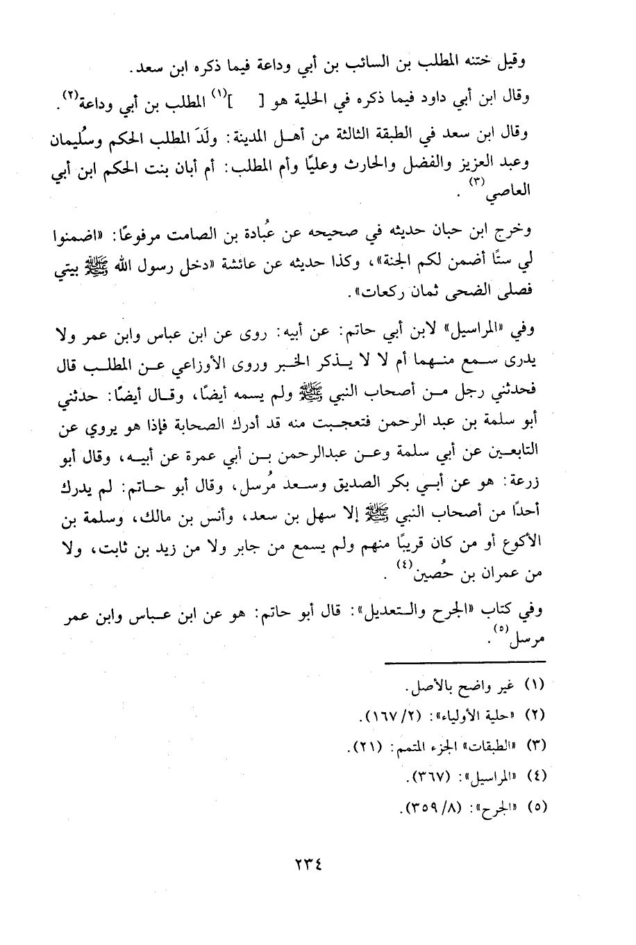 وقال ابن أبي داود فيما ذكره في الحلية: هو [. . . .] المطلب بن أبي وداعة.