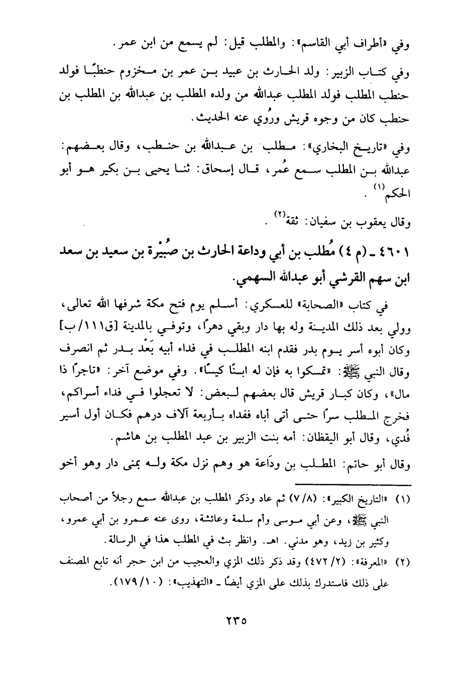 ٤٦٠١ - (م ٤) مطلب بن أبي وداعة، الحارث بن صبيرة بن سعيد بن سعد بن سهم القرشي، أبو عبد الله السهمي.