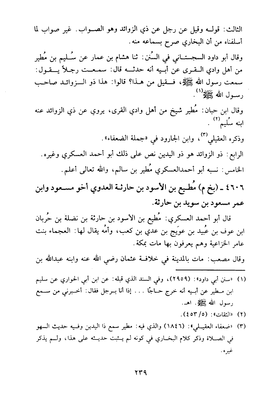 وقال ابن حبان: مطير، شيخ من أهل وادي القرى، يروي عن ذي الزوائد، عنه ابنه سليم.