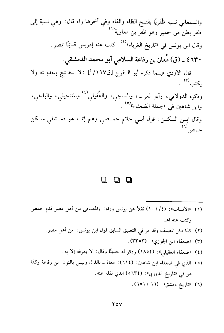 وذكره الدولابي وأبو العرب والساجي والعقيلي والمنتجيلي والبلخي وابن شاهين في «جملة الضعفاء».