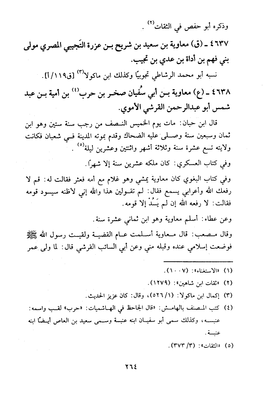 ٤٦٣٨ - (ع) معاوية بن أبي سفيان صخر بن حرب بن أمية بن عبد شمس، أبو عبد الرحمن، القرشي الأموي.