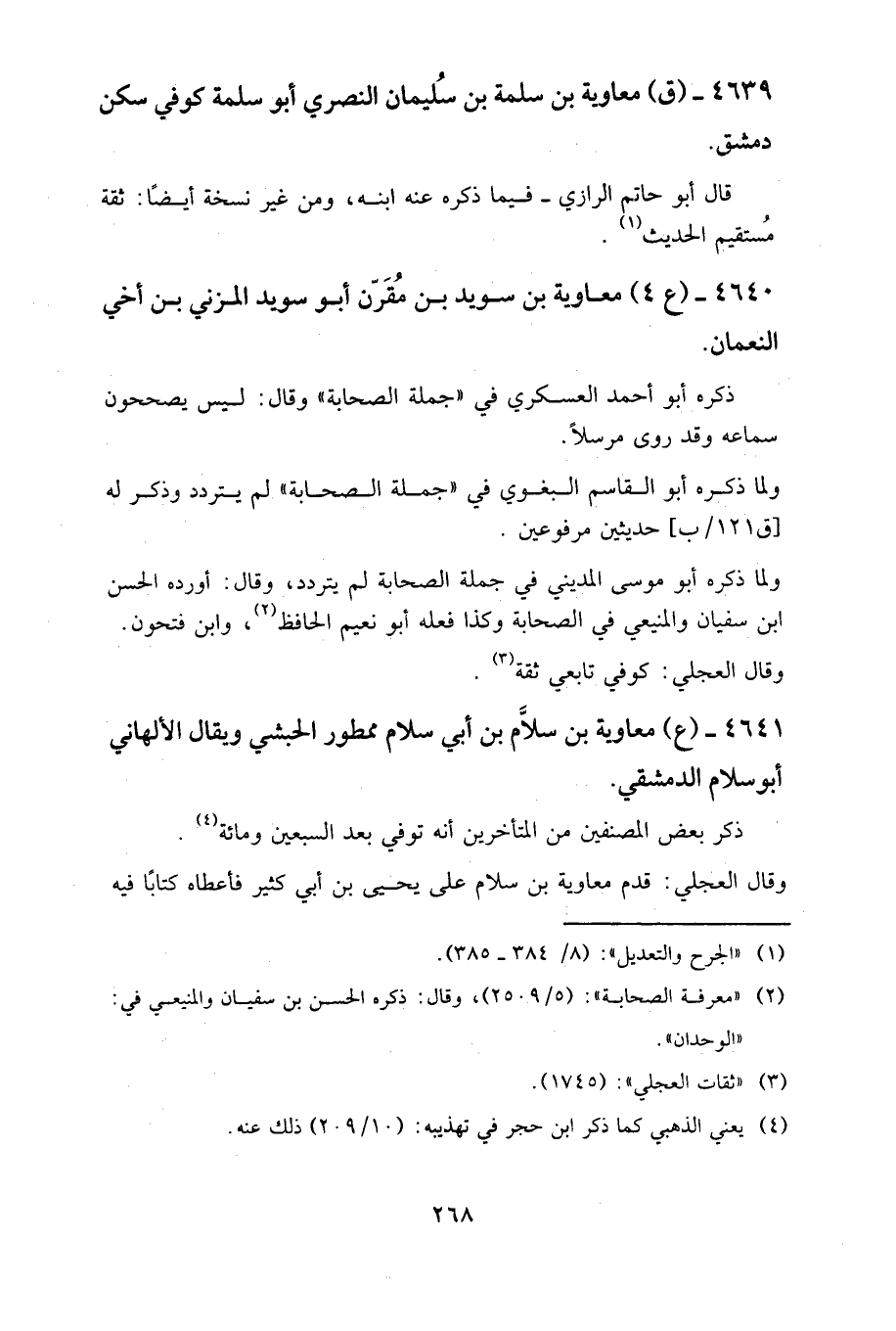٤٦٣٩ - (ق) معاوية بن سلمة بن سليمان النصري، أبو سلمة، كوفي، سكن دمشق.