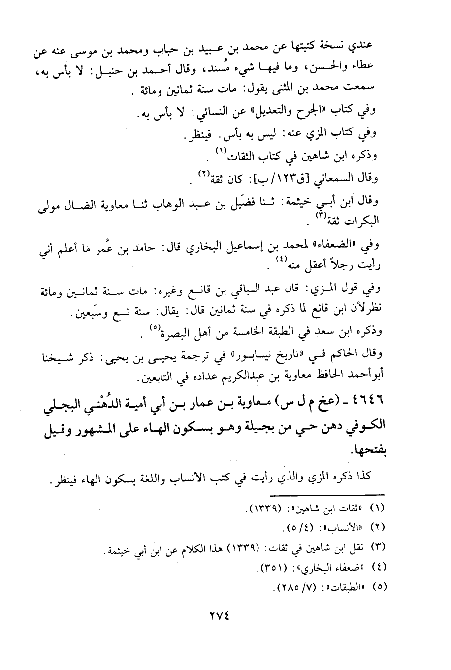 ٤٦٤٦ - (عخ م ل س) معاوية بن عمار بن أبي أمية الدهني البجلي الكوفي، دهن حي من بجيلة، وهو بسكون الهاء على المشهور، وقيل بفتحها.