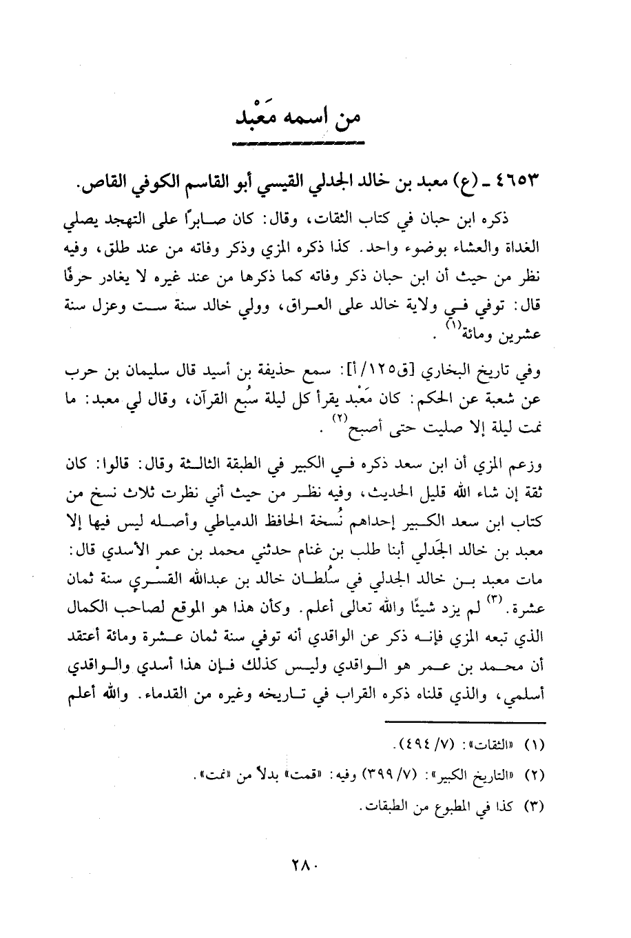 ٤٦٥٣ - (ع) معبد بن خالد الجدلي القيسي، أبو القاسم، الكوفي القاص.