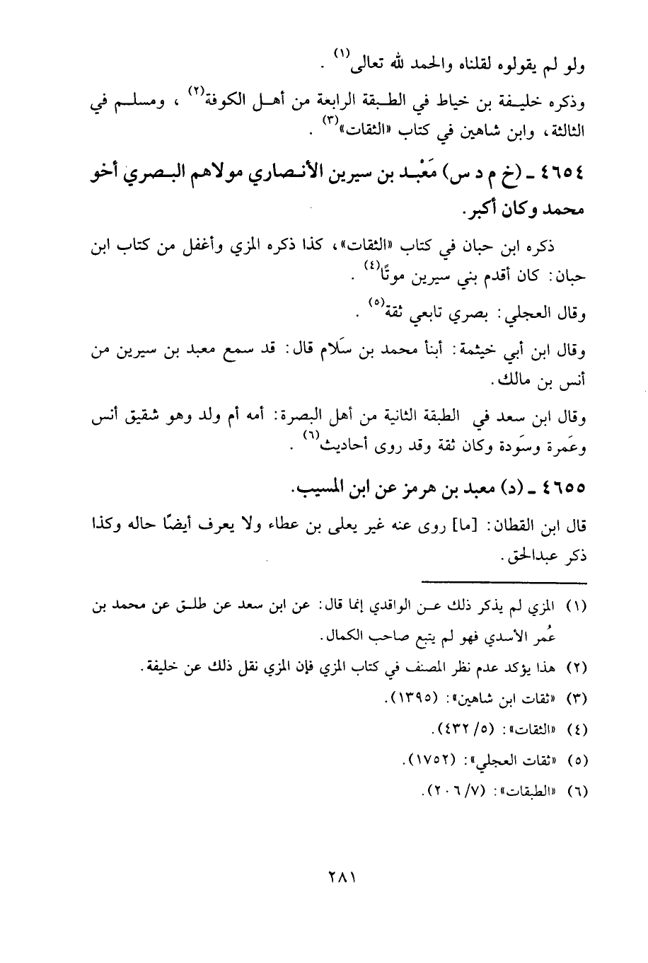 ٤٦٥٤ - (خ م د س) معبد بن سيرين الأنصاري مولاهم، البصري، أخو محمد، وكان أكبر.