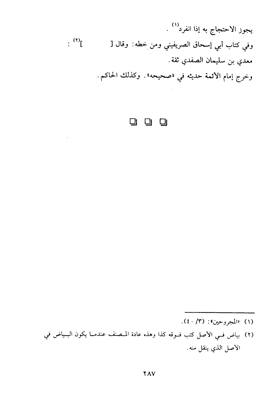 وفي كتاب أبي إسحاق الصريفيني ومن خطه: وقال []: معدي بن سليمان الصفدي ثقة.