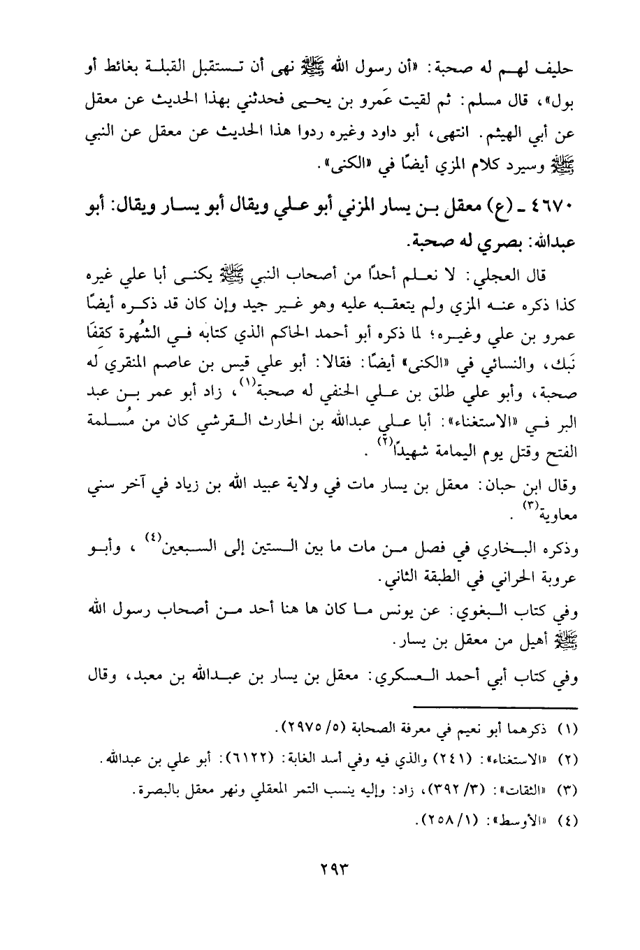 ٤٦٧٠ - (ع) معقل بن يسار المزني، أبو علي، ويقال: أبو يسار، ويقال: أبو عبد الله، بصري، له صحبة.