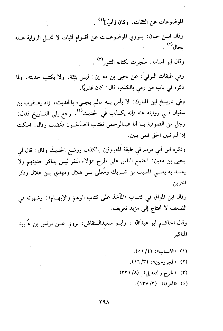 وفي تاريخ ابن المبارك: لا بأس به ما لم يجئ بالحديث، زاد يعقوب بن سفيان في روايته عنه: فإنه يكذب في الحديث، رجع إلى التاريخ، فقال رجل من الصوفية: يا أبا عبد الرحمن، تغتاب الصالحين! فغضب، وقال: اسكت؛ إذا لم نبين الحق فمن يبين؟!