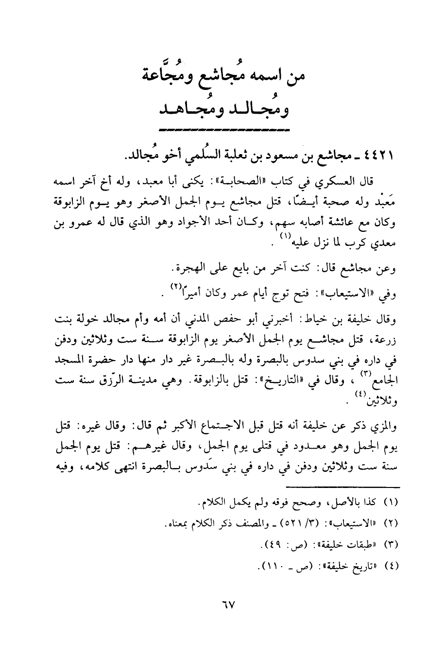 ٤٤٢١ - مجاشع بن مسعود بن ثعلبة السلمي، أخو مجالد.