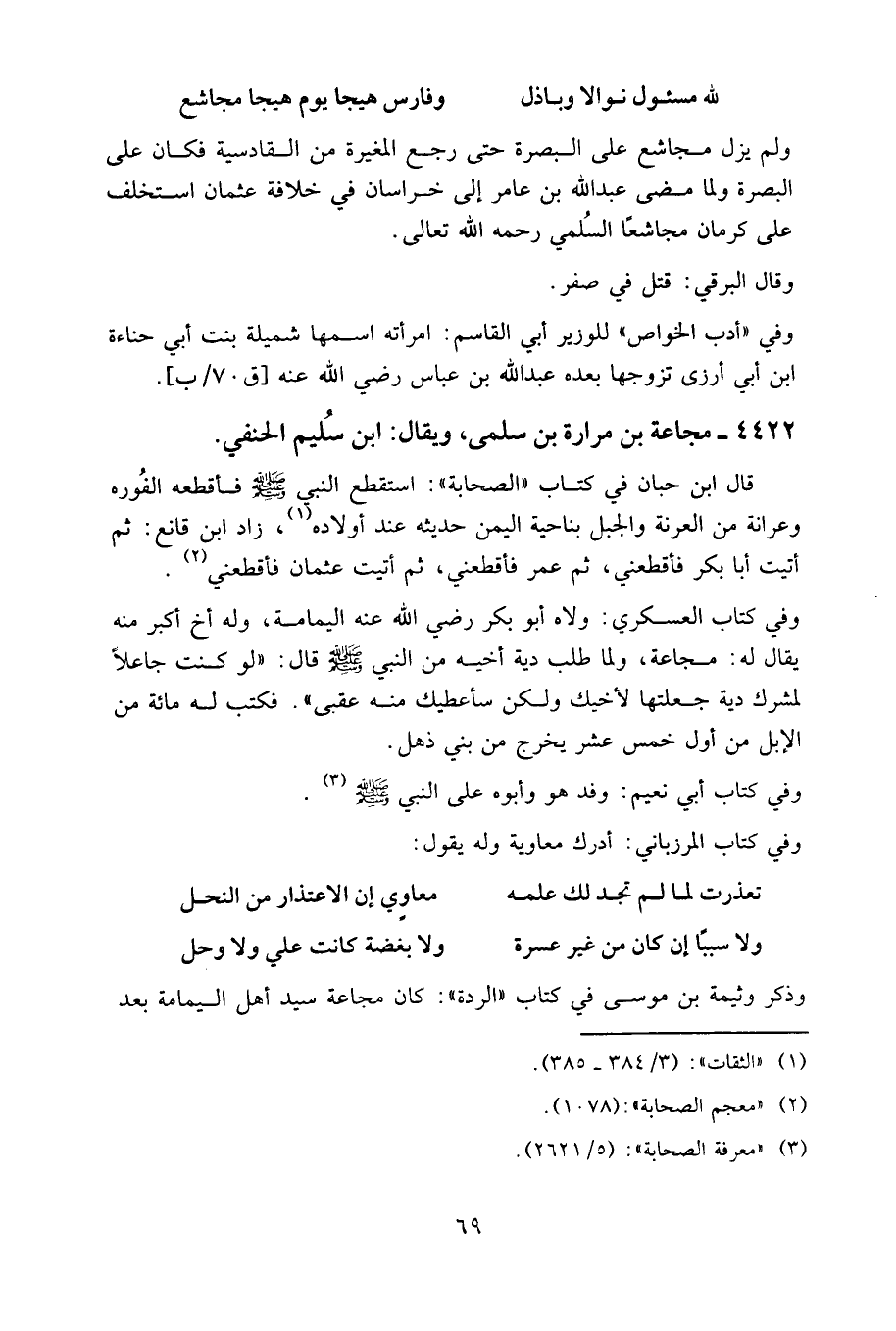٤٤٢٢ - مجاعة بن مرارة بن سلمى، ويقال: ابن سليم الحنفي.