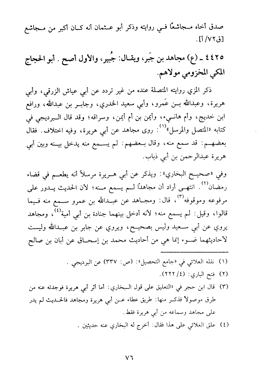 ٤٤٢٥ - (ع) مجاهد بن جبر، ويقال: جبير، والأول أصح. أبو الحجاج المكي المخزومي مولاهم.