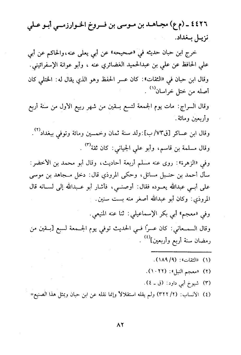 ٤٤٢٦ - (م ع) مجاهد بن موسى بن فروخ الخوارزمي، أبو علي، نزيل بغداد.