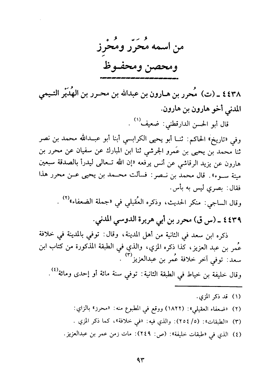٤٤٣٨ - (ت) محرر بن هارون بن عبد الله بن محرر بن الهدير التيمي المدني، أخو هارون بن هارون.