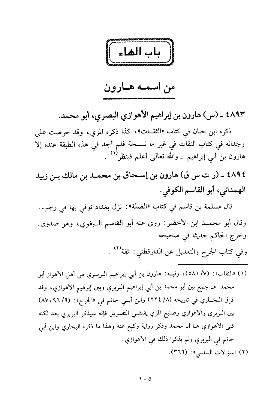 ٤٨٩٣ - (س) هارون بن إبراهيم الأهوازي البصري، أبو محمد.