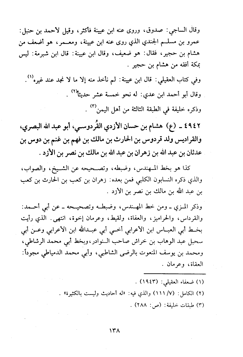 ٤٩٤٢ - (ع) هشام بن حسان الأزدي القردوسي، أبو عبد الله البصري، والقراديس ولد قردوس بن الحارث بن مالك بن فهم بن غنم بن دوس بن عدثان بن عبد الله بن زهران بن عبد الله بن مالك بن نصر بن الأزد.