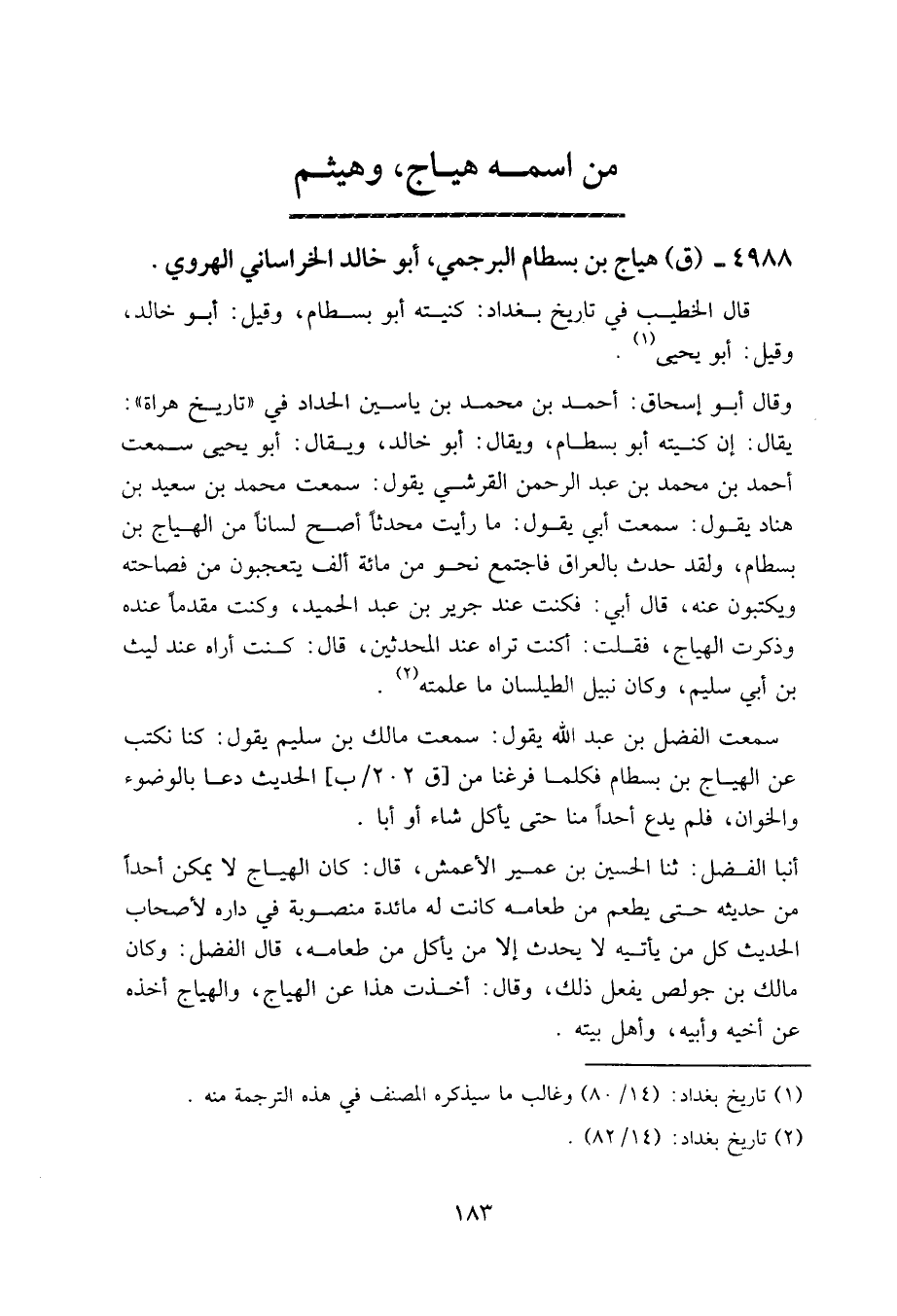 ٤٩٨٨ - (ق) هياج بن بسطام البرجمي، أبو خالد الخراساني الهروي.