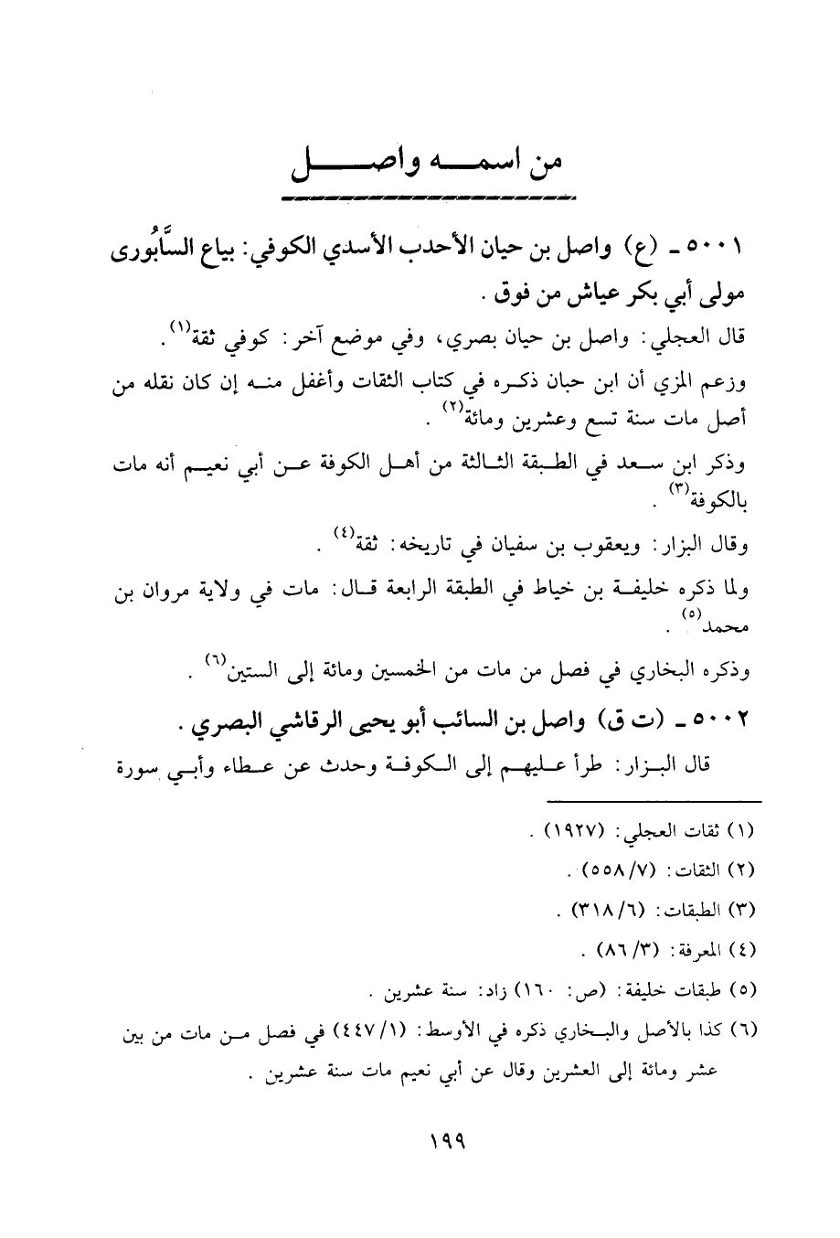 ٥٠٠١ - (ع) واصل بن حيان الأحدب الأسدي الكوفي: بياع السابورى، مولى أبي بكر عياش من فوق.