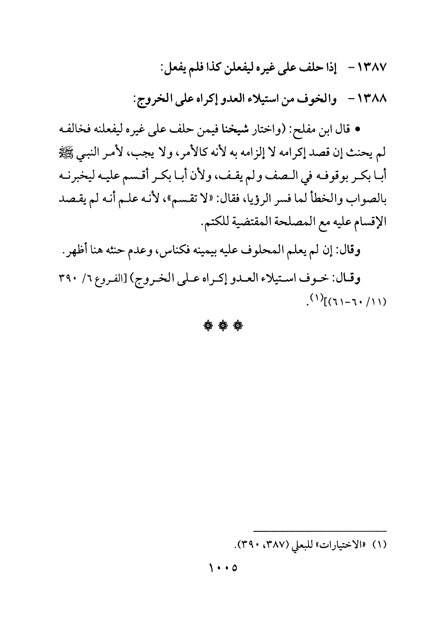 (¬١) «الاختيارات» للبعلي (٣٨٧، ٣٩٠).