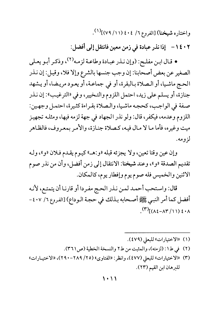 ١٤٠٢ - إذا نذر عبادة في زمن معين فانتقل إلى أفضل: