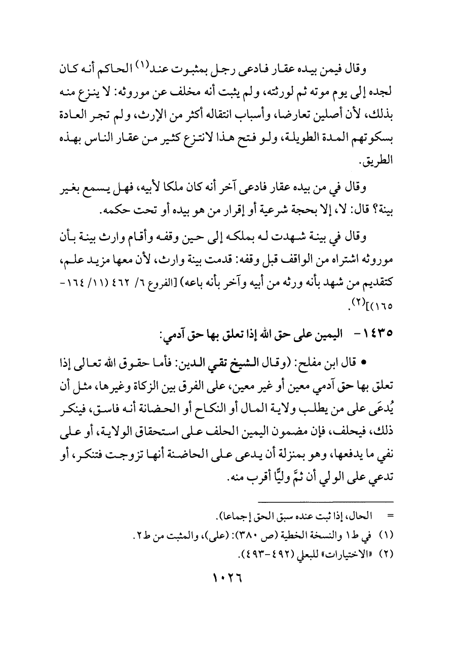 ١٤٣٥ - اليمين على حق الله إذا تعلق بها حق آدمي: