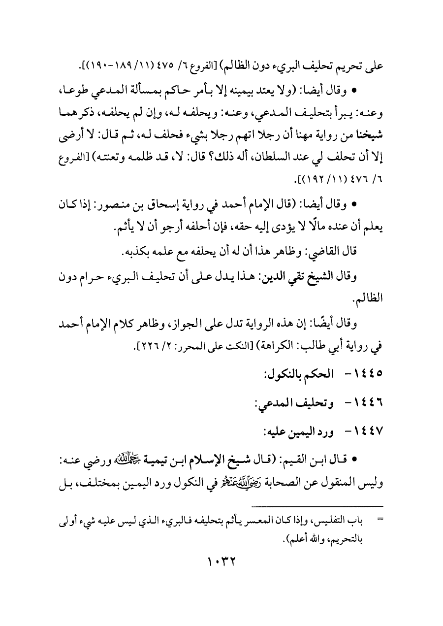 على تحريم تحليف البريء دون الظالم) [الفروع ٦/ ٤٧٥ (١١/ ١٨٩ - ١٩٠)].
