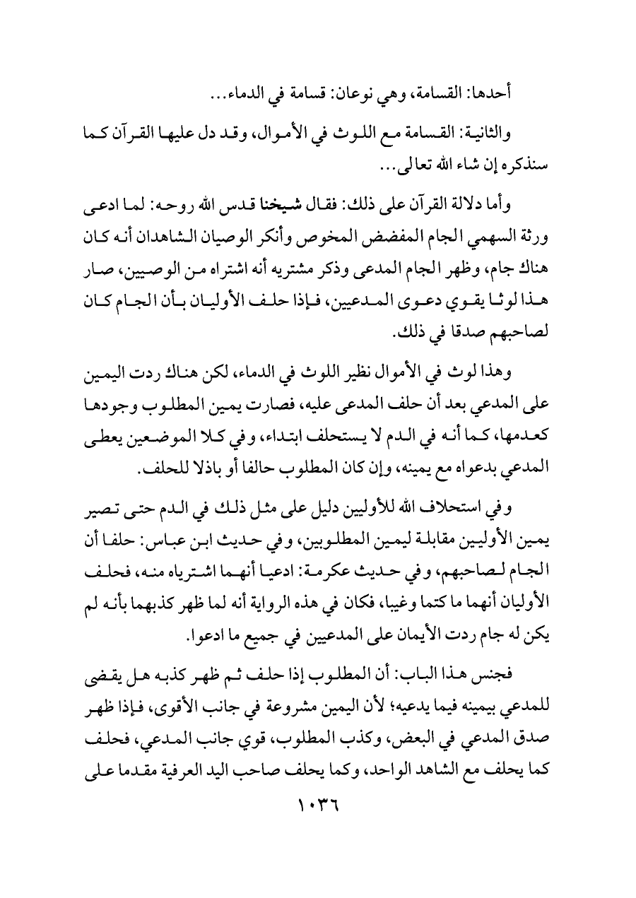 والثانية: القسامة مع اللوث في الأموال، وقد دل عليها القرآن كما سنذكره إن شاء الله تعالى ...