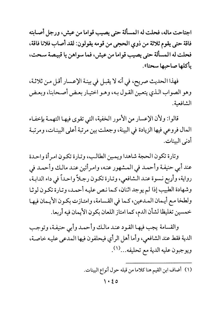 (¬١) أضاف ابن القيم هنا كلاما من قبله حول أنواع البينات.