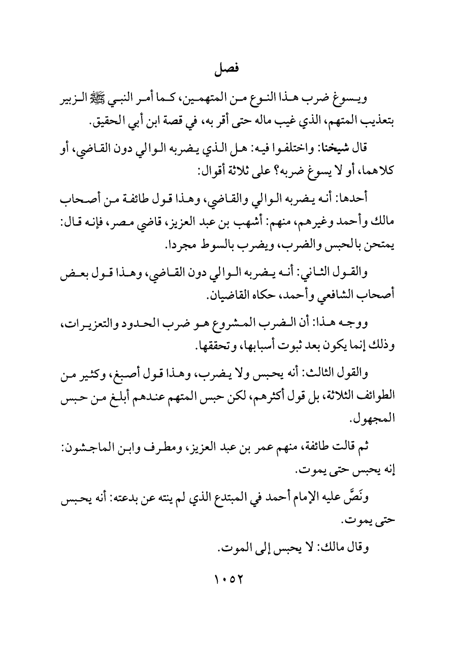 والقول الثالث: أنه يحبس ولا يضرب، وهذا قول أصبغ، وكثير من الطوائف الثلاثة، بل قول أكثرهم، لكن حبس المتهم عندهم أبلغ من حبس المجهول.