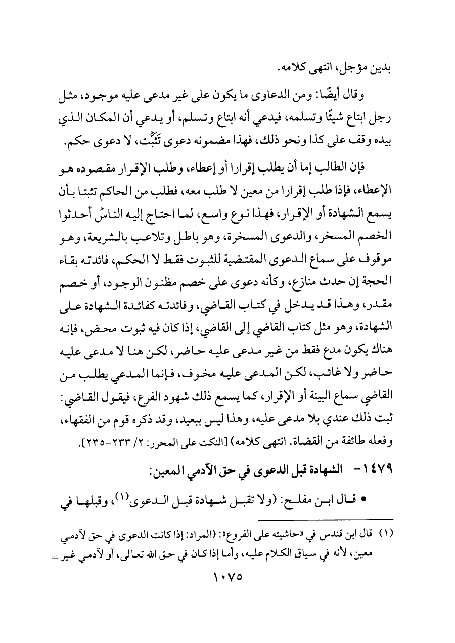 ١٤٧٩ - الشهادة قبل الدعوى في حق الآدمي المعين: