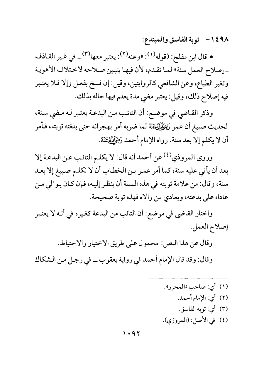 ١٤٩٨ - توبة الفاسق والمبتدع: