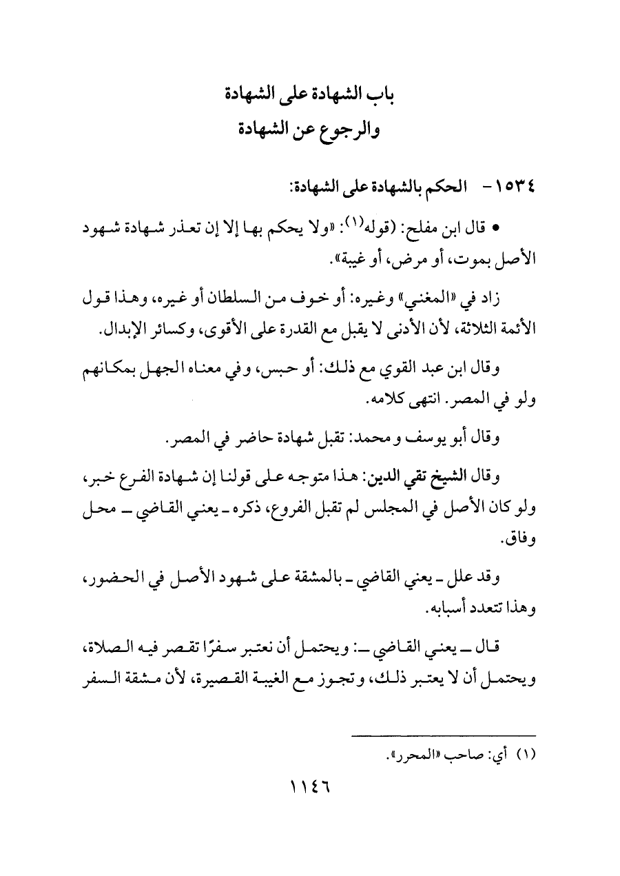 ١٥٣٤ - الحكم بالشهادة على الشهادة: