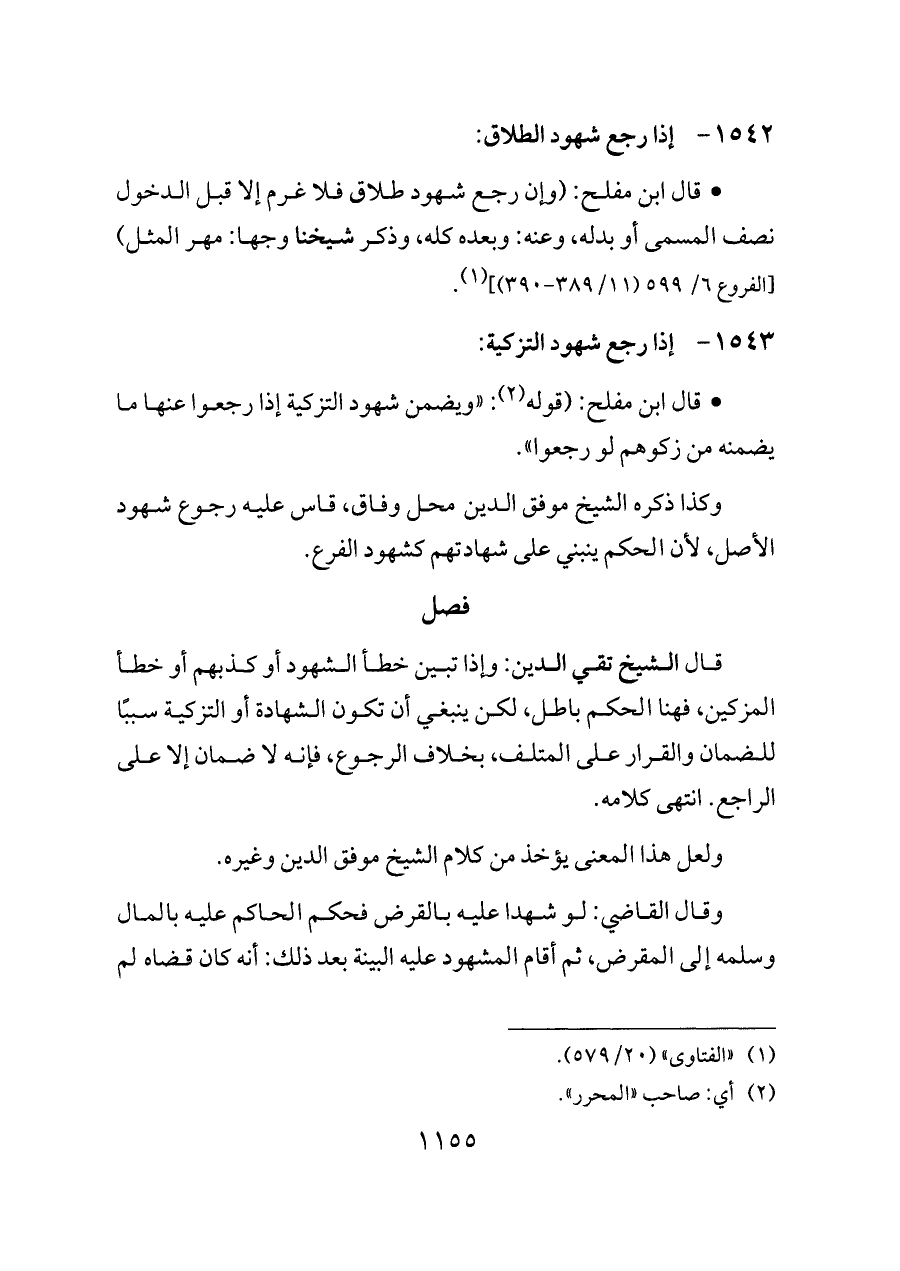 ١٥٤٢ - إذا رجع شهود الطلاق: