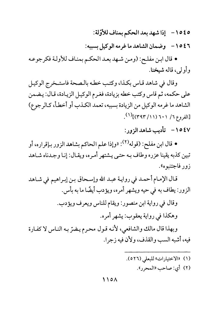 - قال ابن مفلح: (ومن شهد بعد الحكم بمناف للأولة فكرجوعه وأولى، قاله شيخنا.