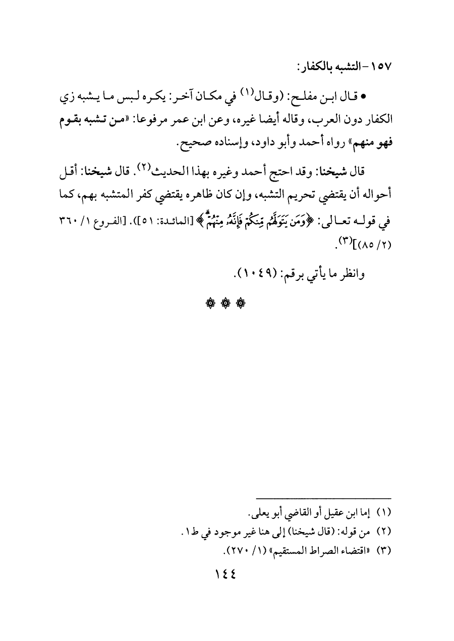 (¬٣) «اقتضاء الصراط المستقيم» (١/ ٢٧٠).