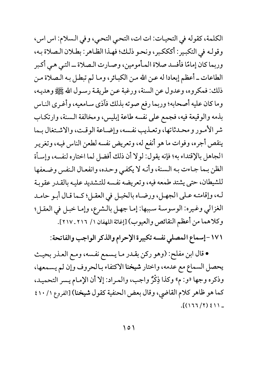 ١٧١ - إسماع المصلي نفسه تكبيرة الإحرام والذكر الواجب والفاتحة: