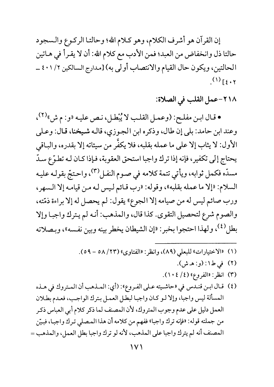 ٢١٨ - عمل القلب في الصلاة: