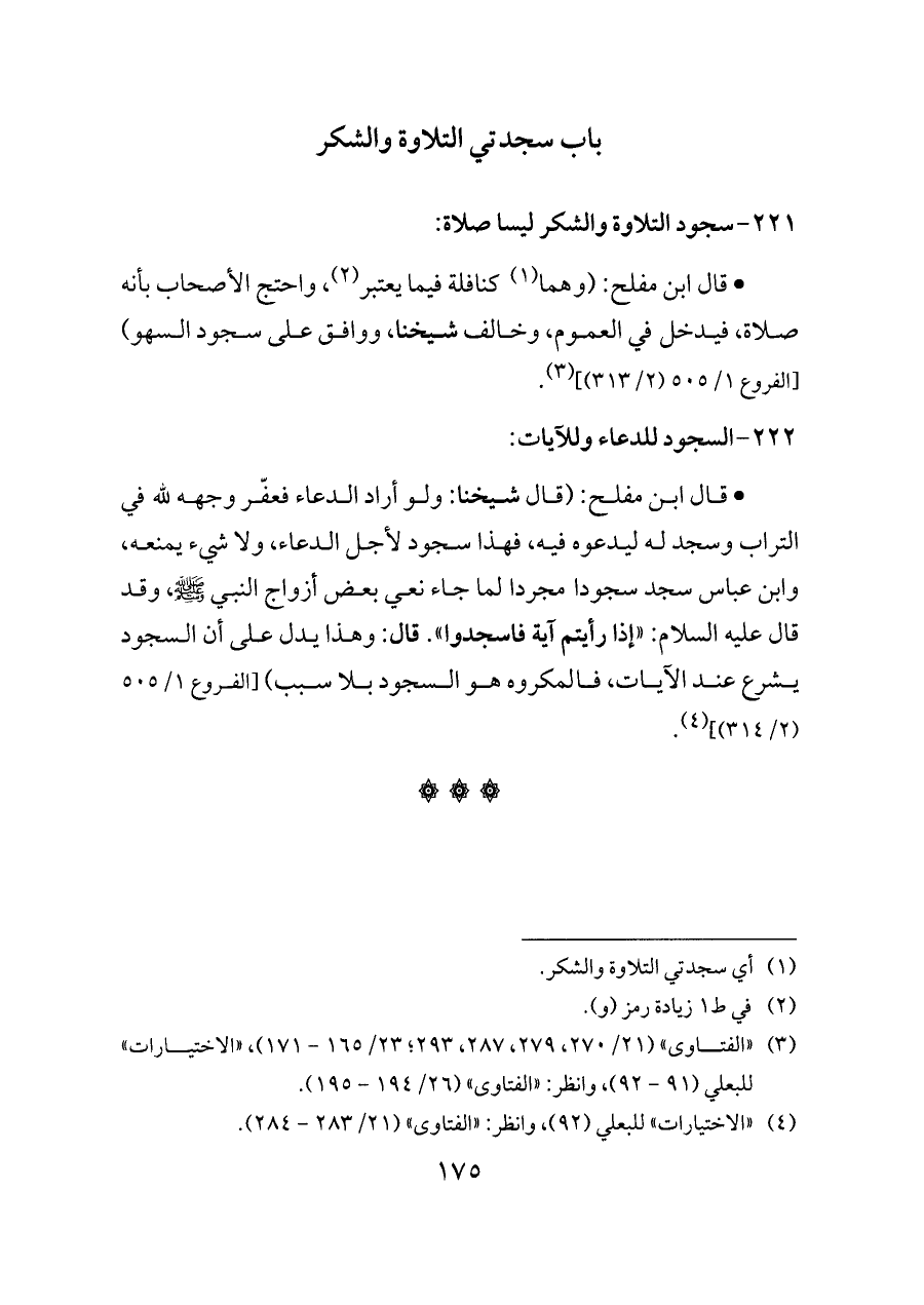 ٢٢١ - سجود التلاوة والشكر ليسا صلاة: