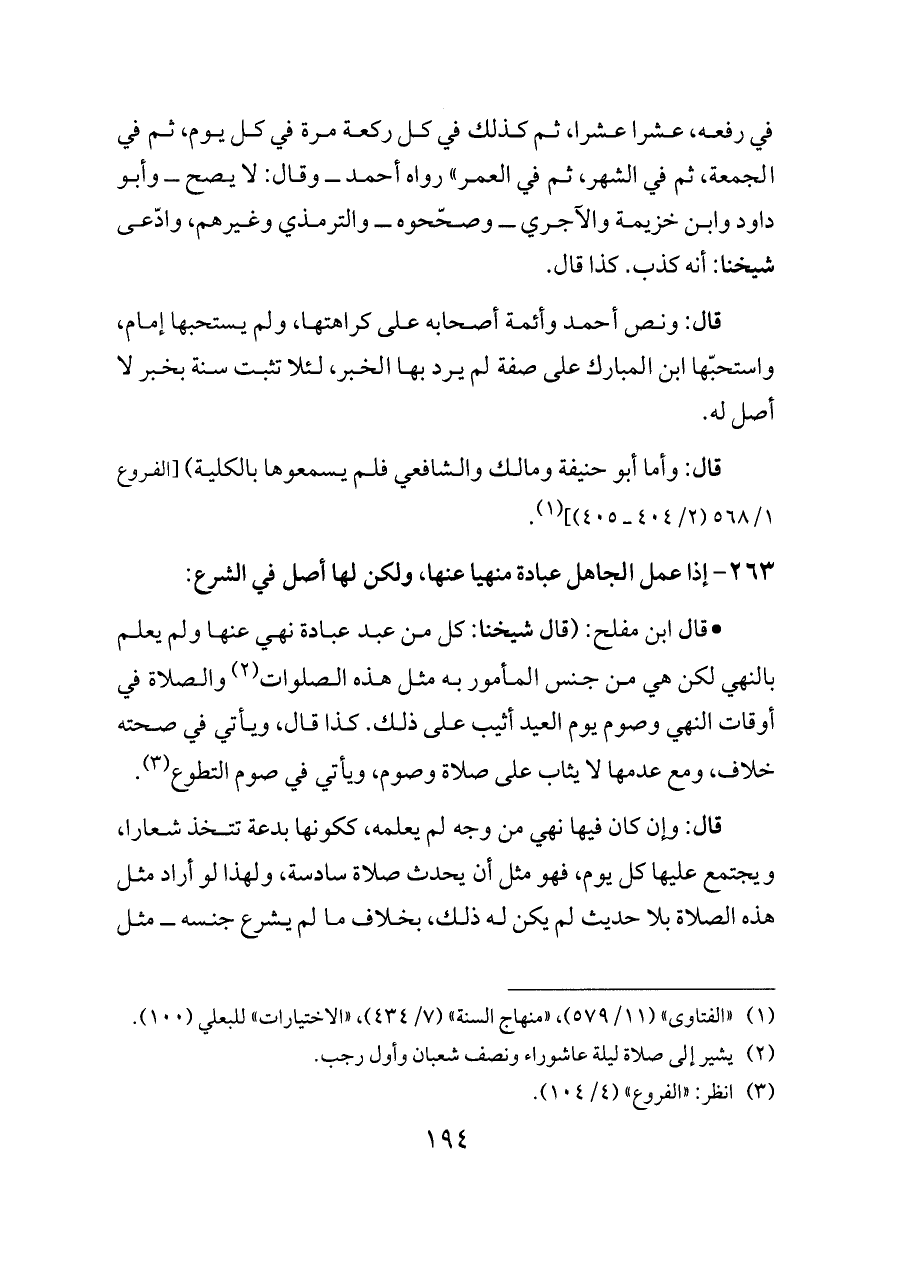 (¬٢) يشير إلى صلاة ليلة عاشوراء ونصف شعبان وأول رجب.