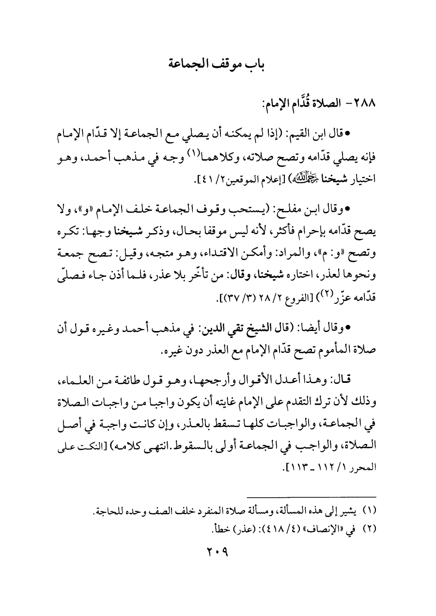 ٢٨٨ - الصلاة قُدَّام الإمام: