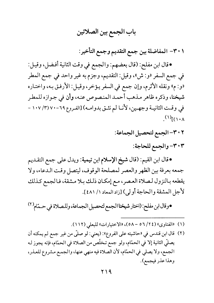 ٣٠١ - المفاضلة بين جمع التقديم وجمع التأخير: