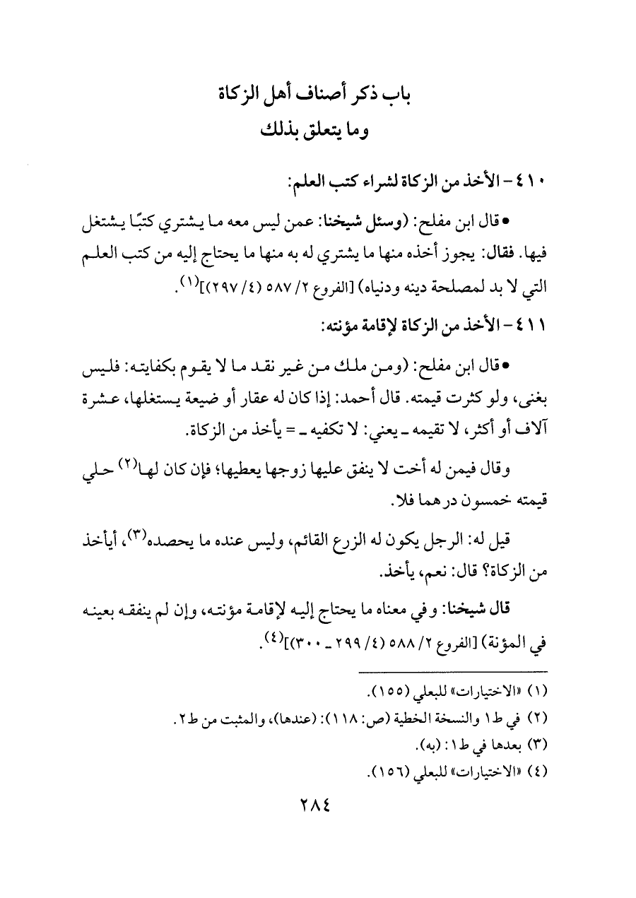 - قال ابن مفلح: (وسئل شيخنا: عمن ليس معه ما يشتري كتبًا يشتغل فيها. فقال: يجوز أخذه منها ما يشتري له به منها ما يحتاج إليه من كتب العلم التي لا بد لمصلحة دينه ودنياه) [الفروع ٢/ ٥٨٧ (٤/ ٢٩٧)] (¬١).