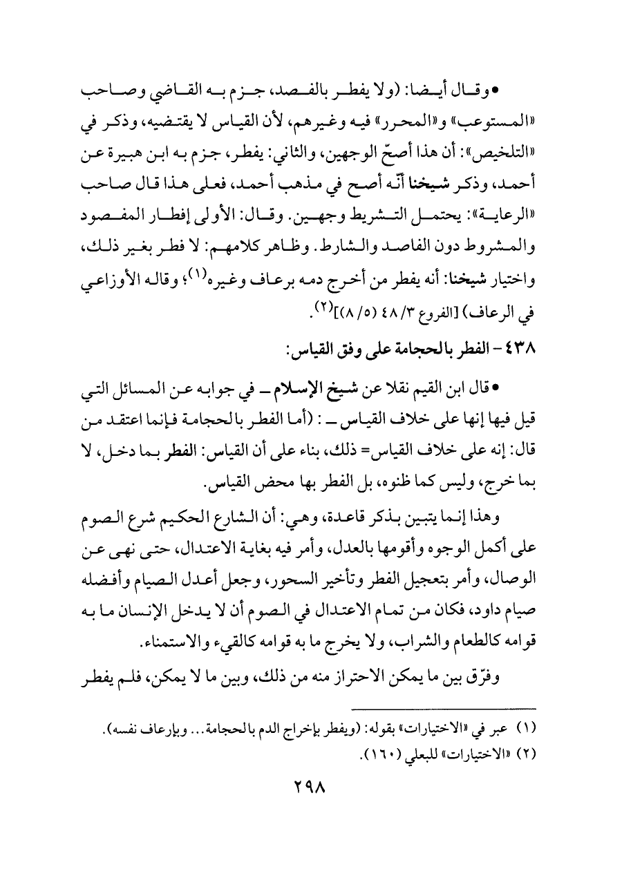 ٤٣٨ - الفطر بالحجامة على وفق القياس: